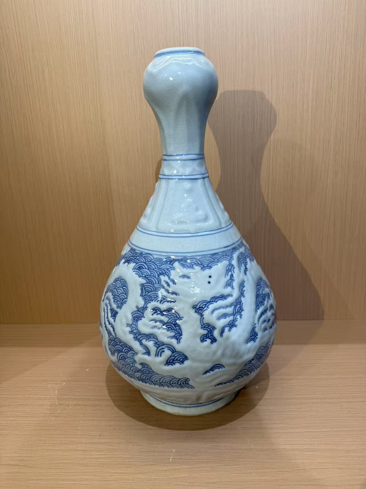 元 青花留白暗刻蒜头瓶