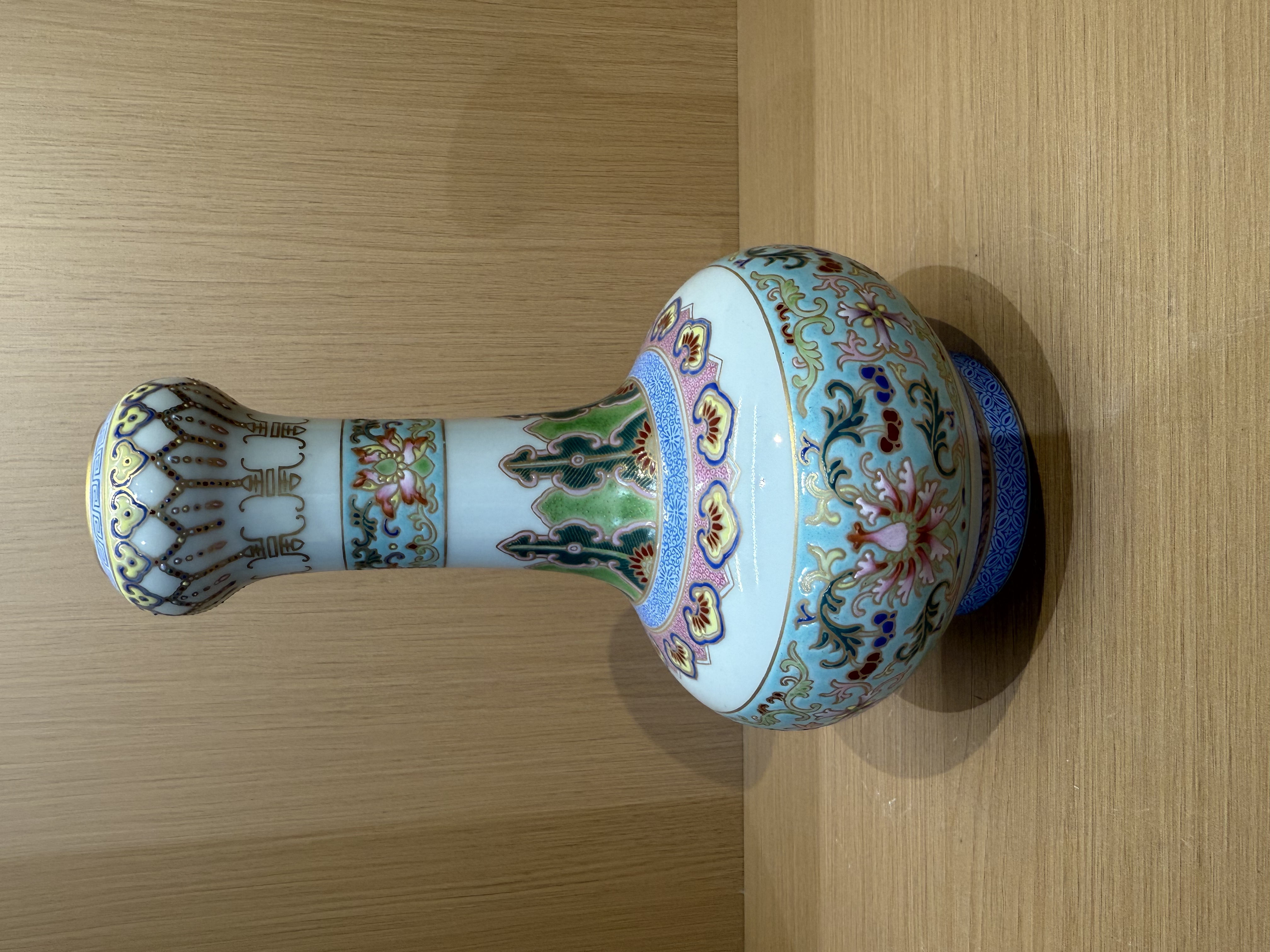清早期 珐琅如意纹蒜头瓶