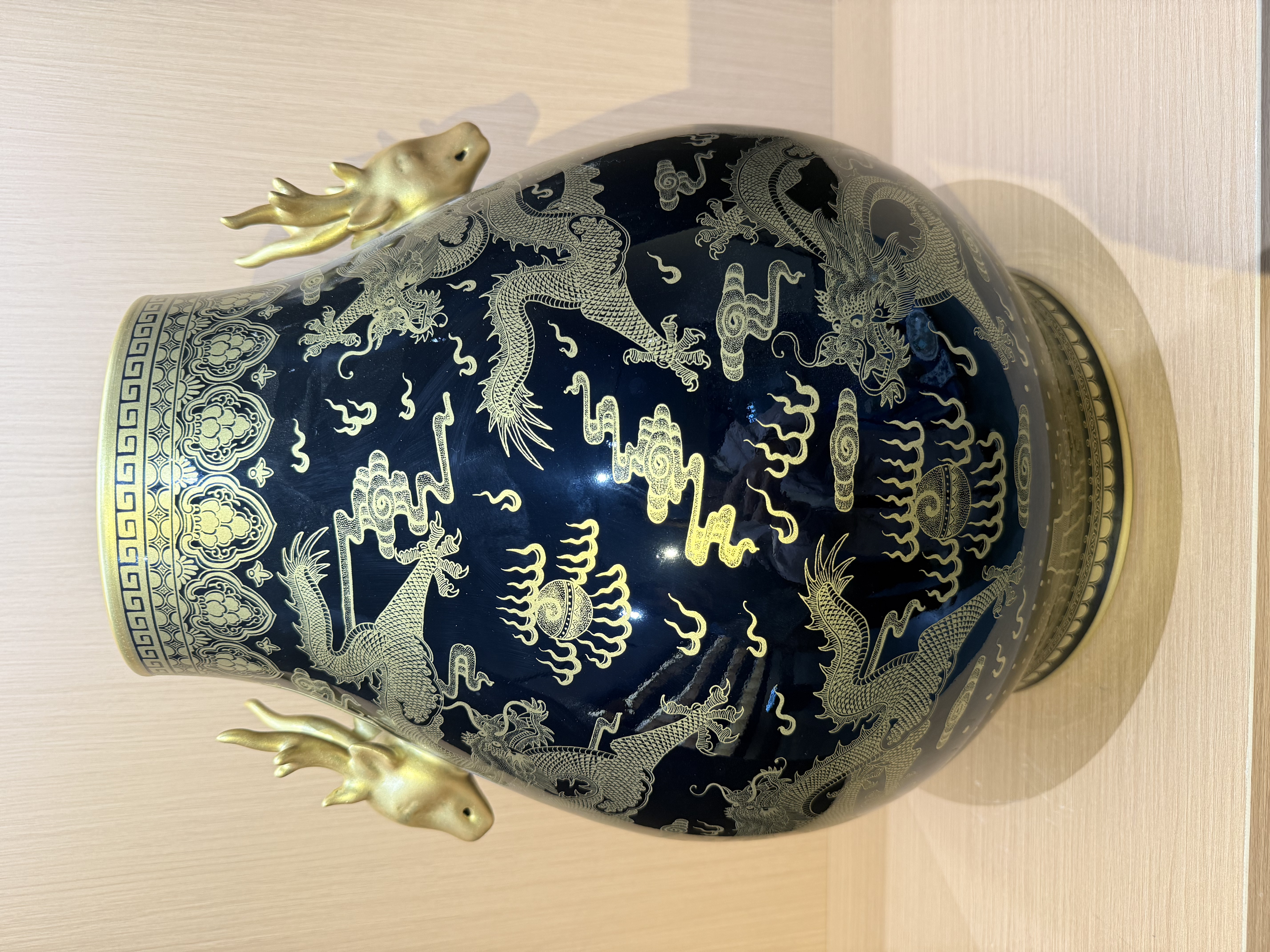 清乾隆 乌金釉描金九龙纹鹿头尊