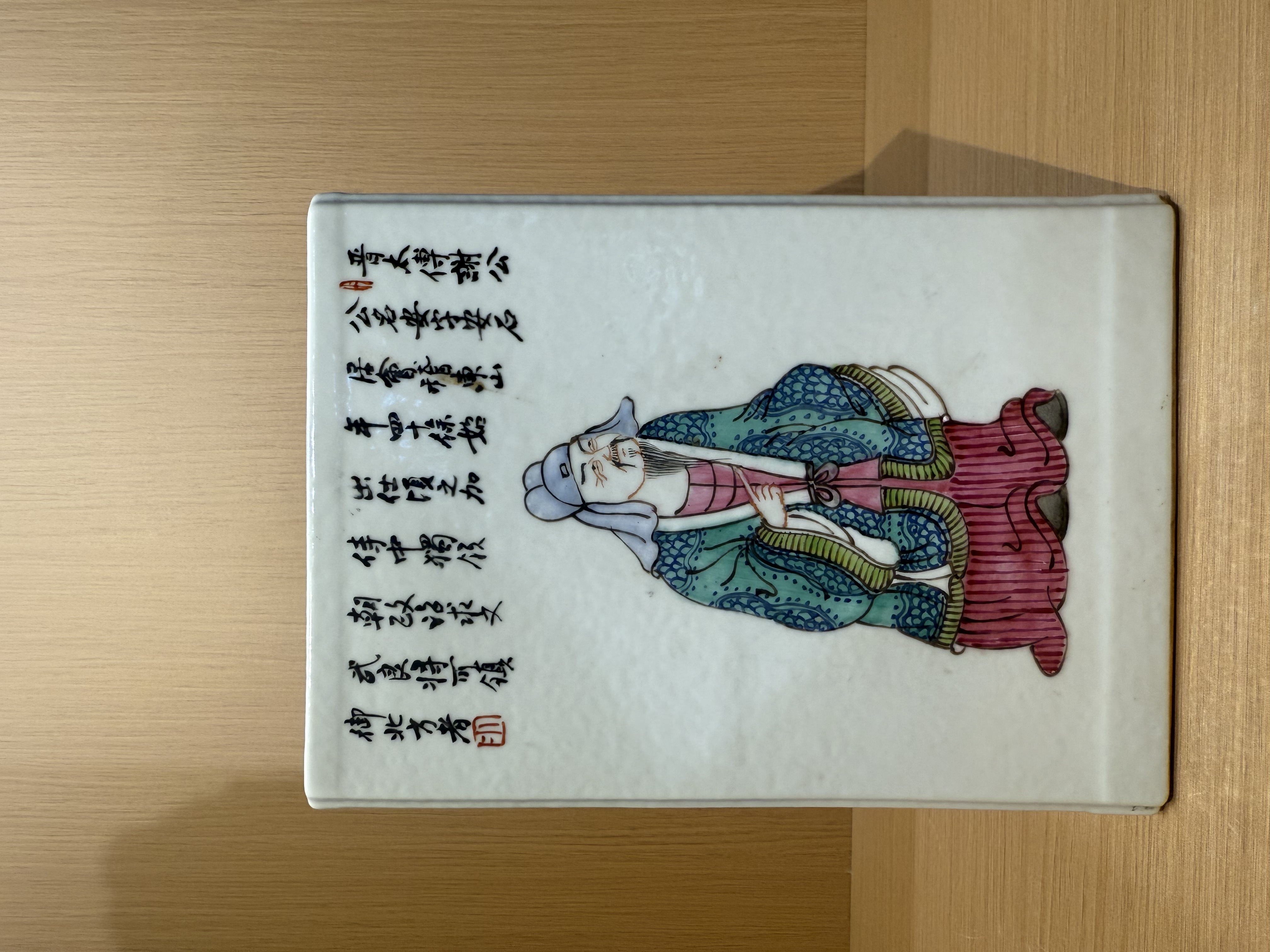 清晚期 四方诗文人物粉彩镶器