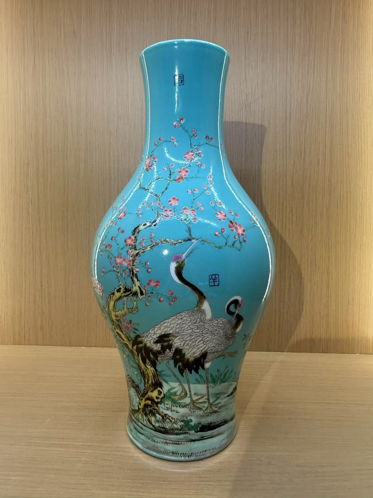 清早期 重工珐琅雕刻博古纹抱月瓶