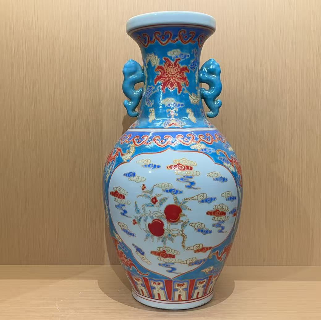 清乾隆 重工珐琅柿柿如意双耳尊