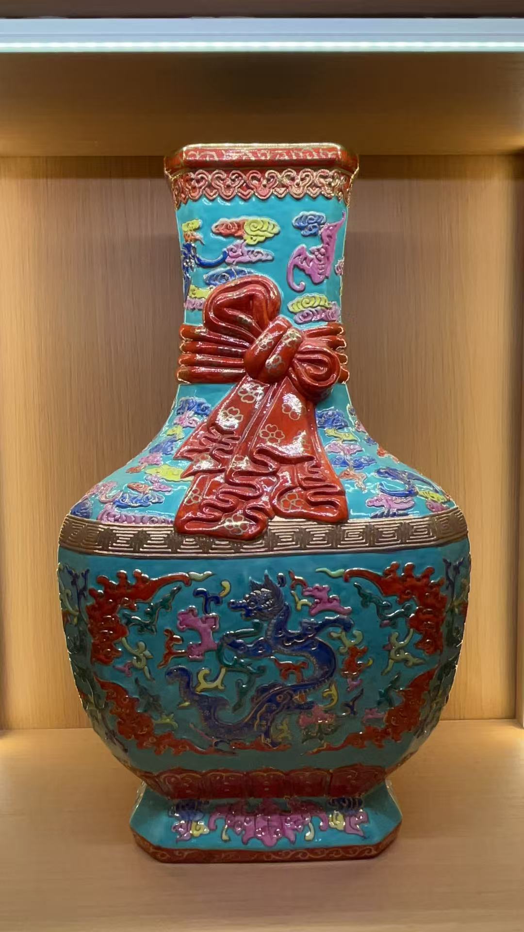清乾隆 重工洋彩卷草龙纹雕刻包袱瓶