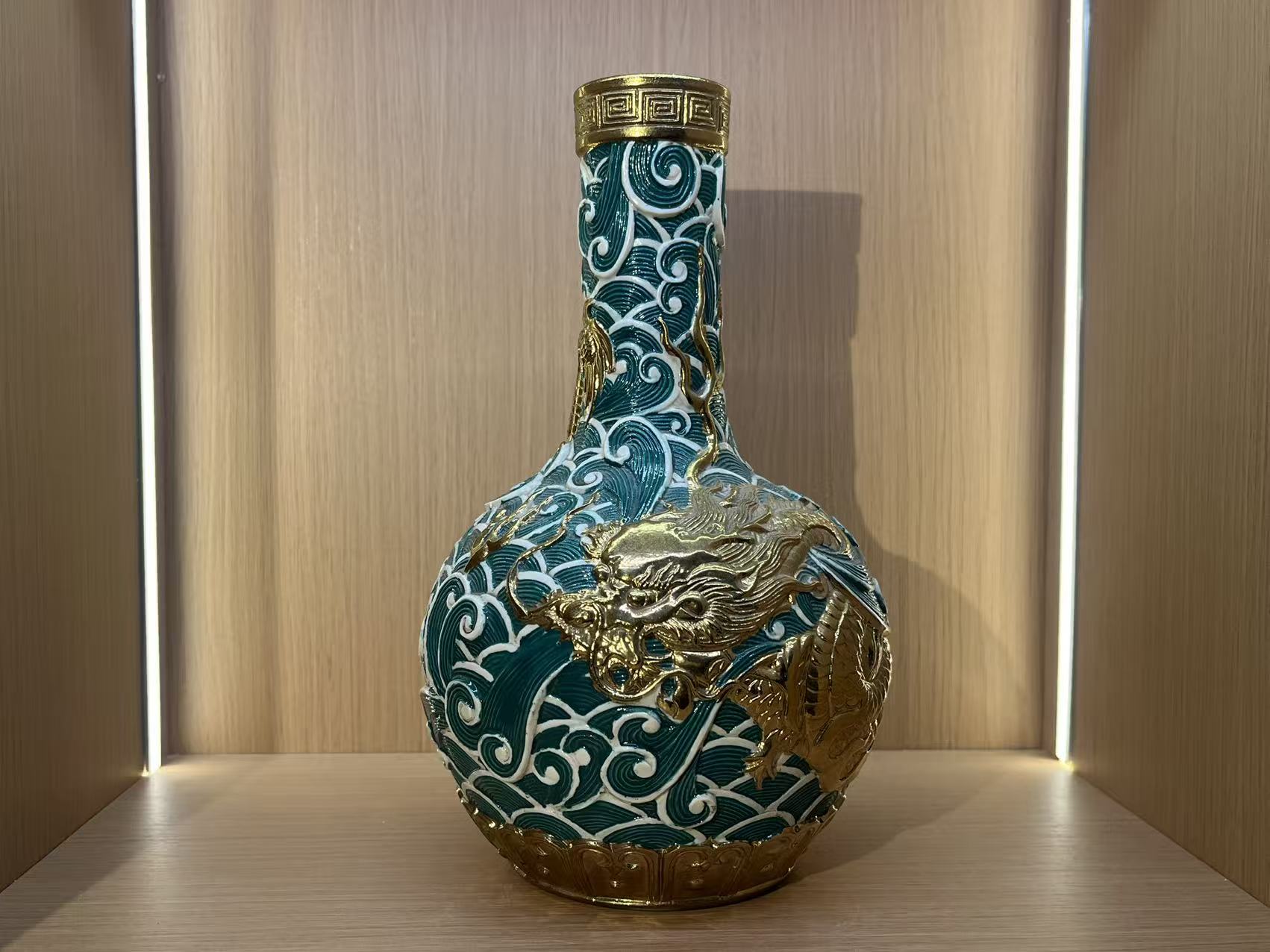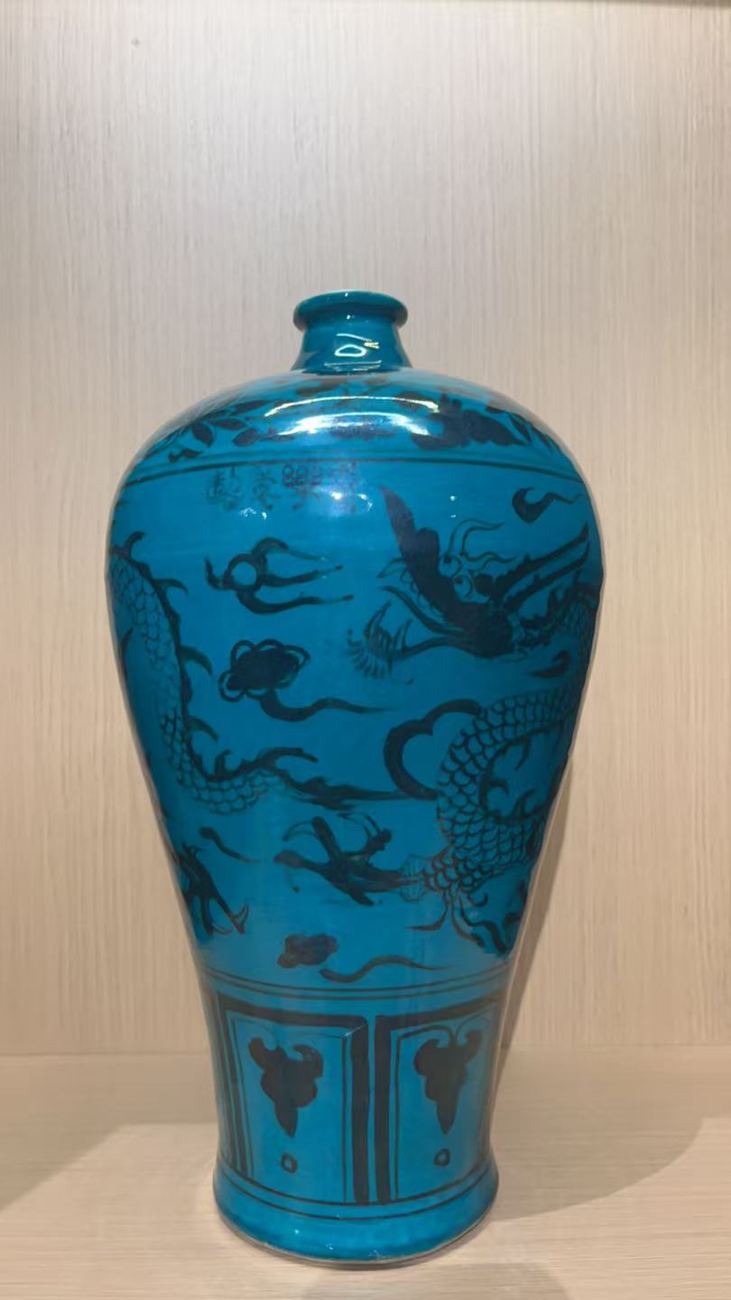 明永乐 孔雀绿釉青花龙纹梅瓶