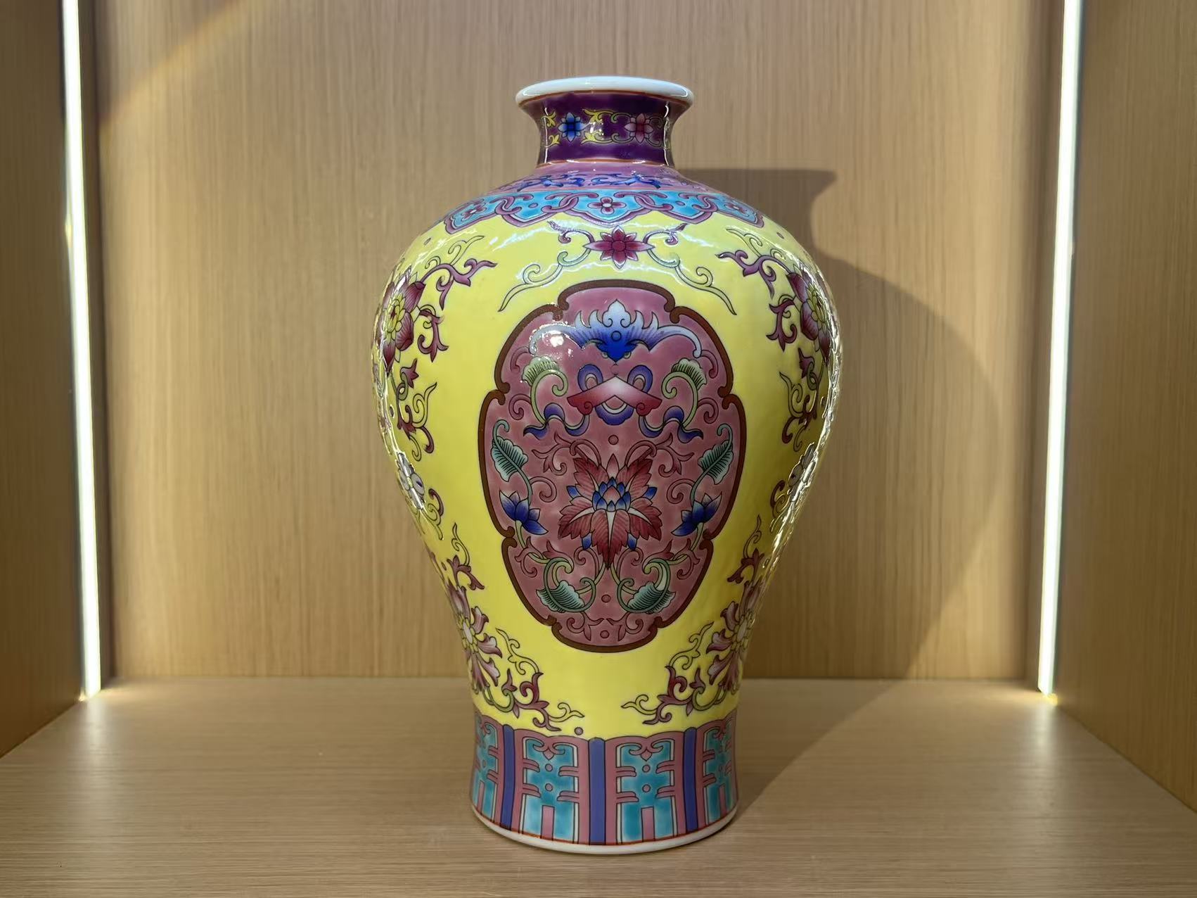 清乾隆 重工洋彩开窗梅瓶