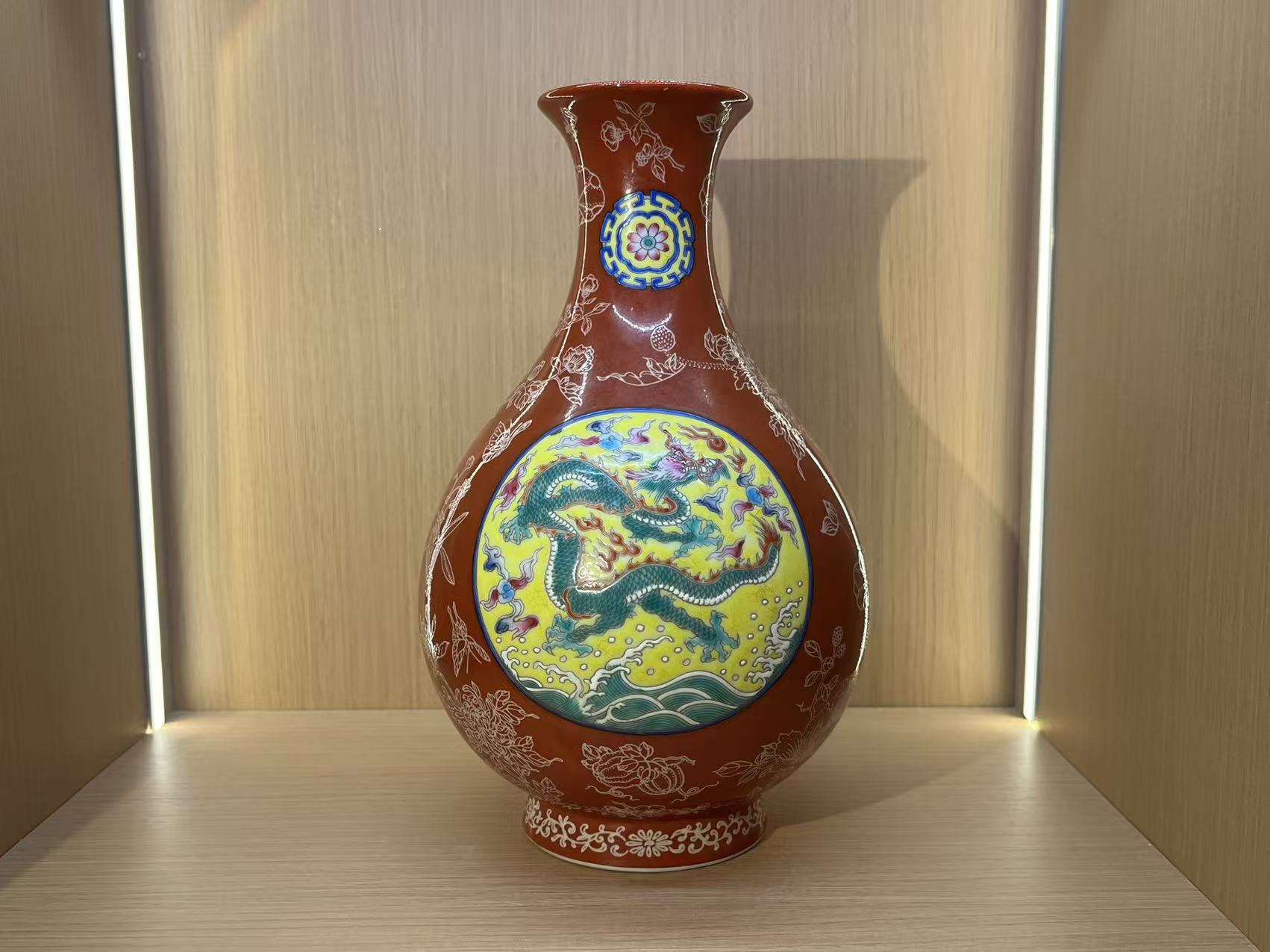 清雍正 珊瑚红地描银龙纹玉壶春