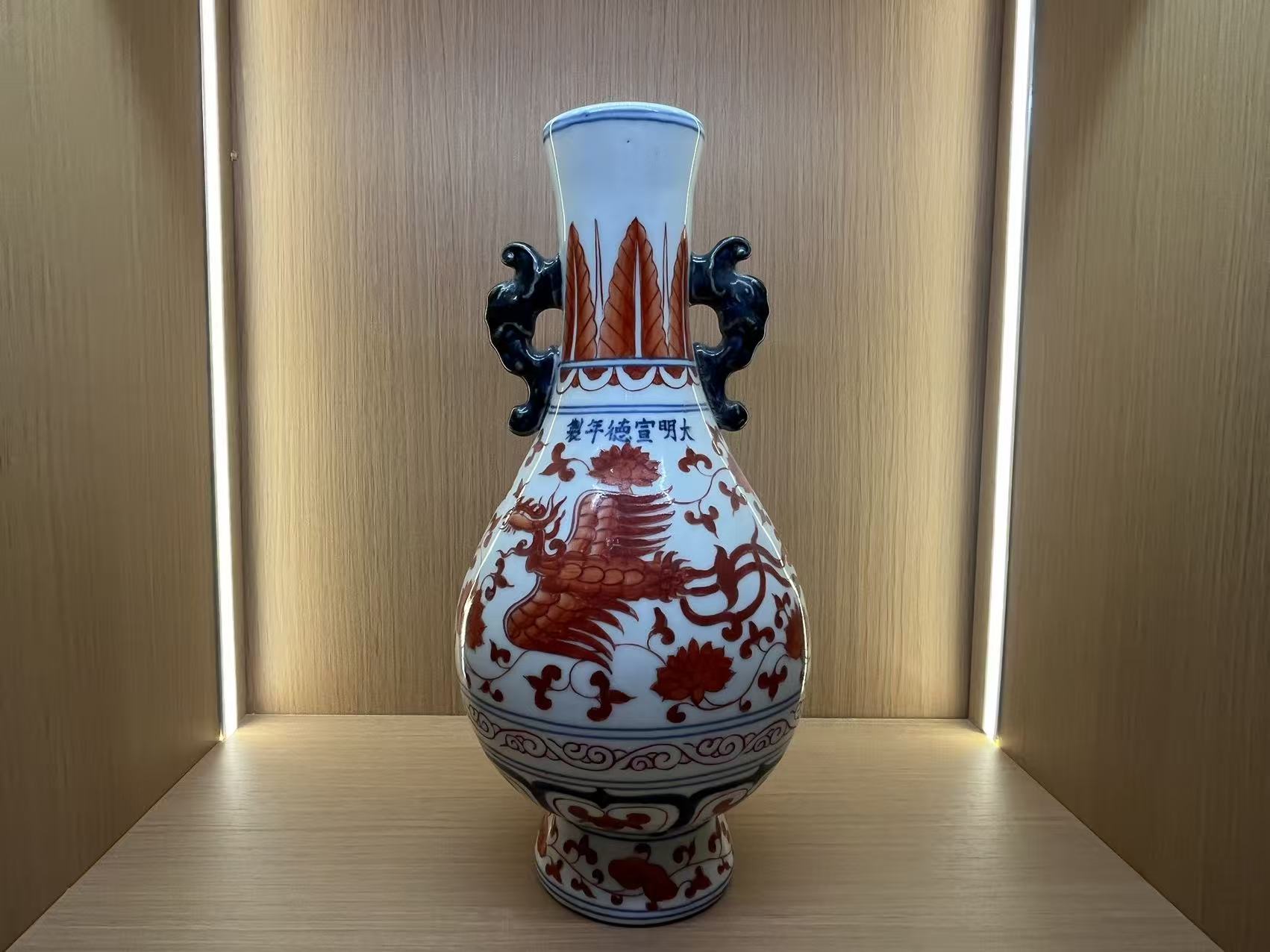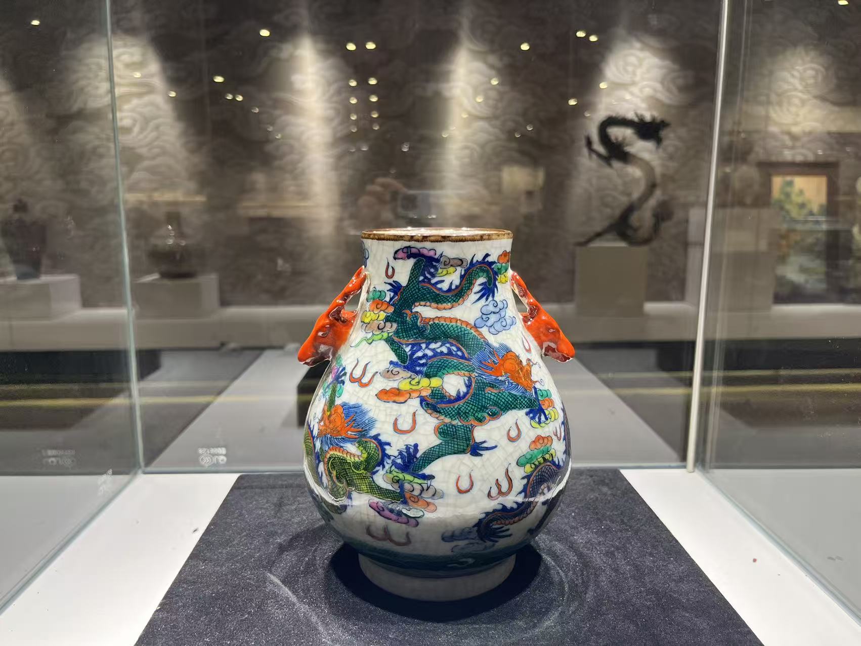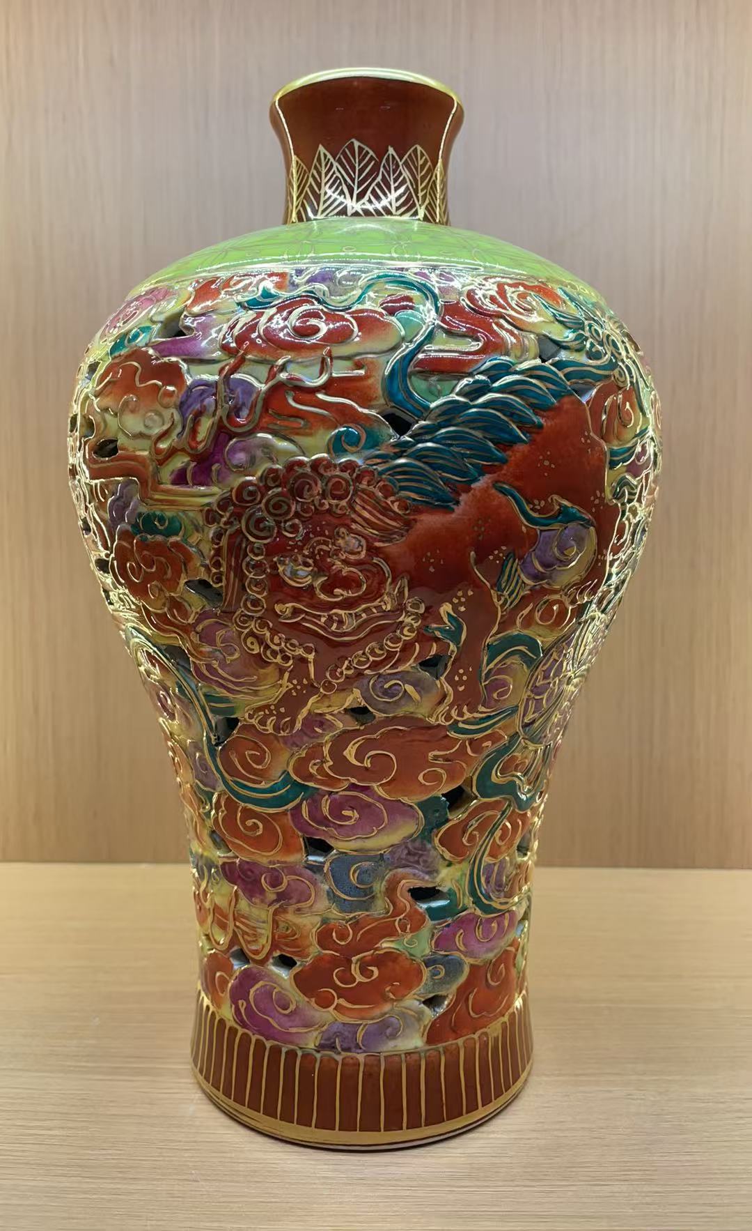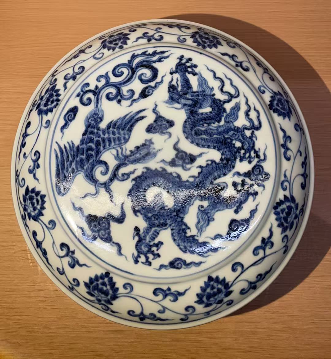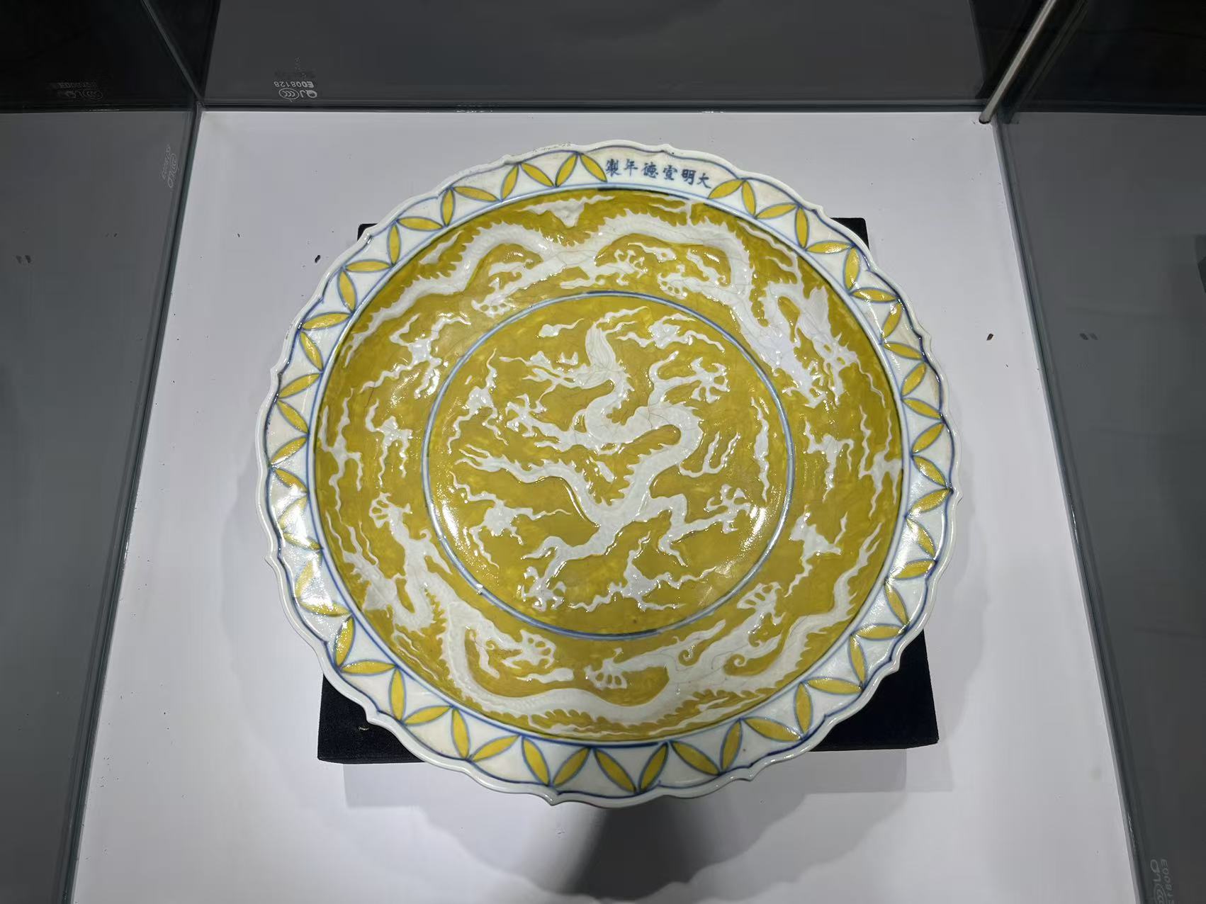 明 宣德黄釉雕刻留白龙纹葵口赏盘
