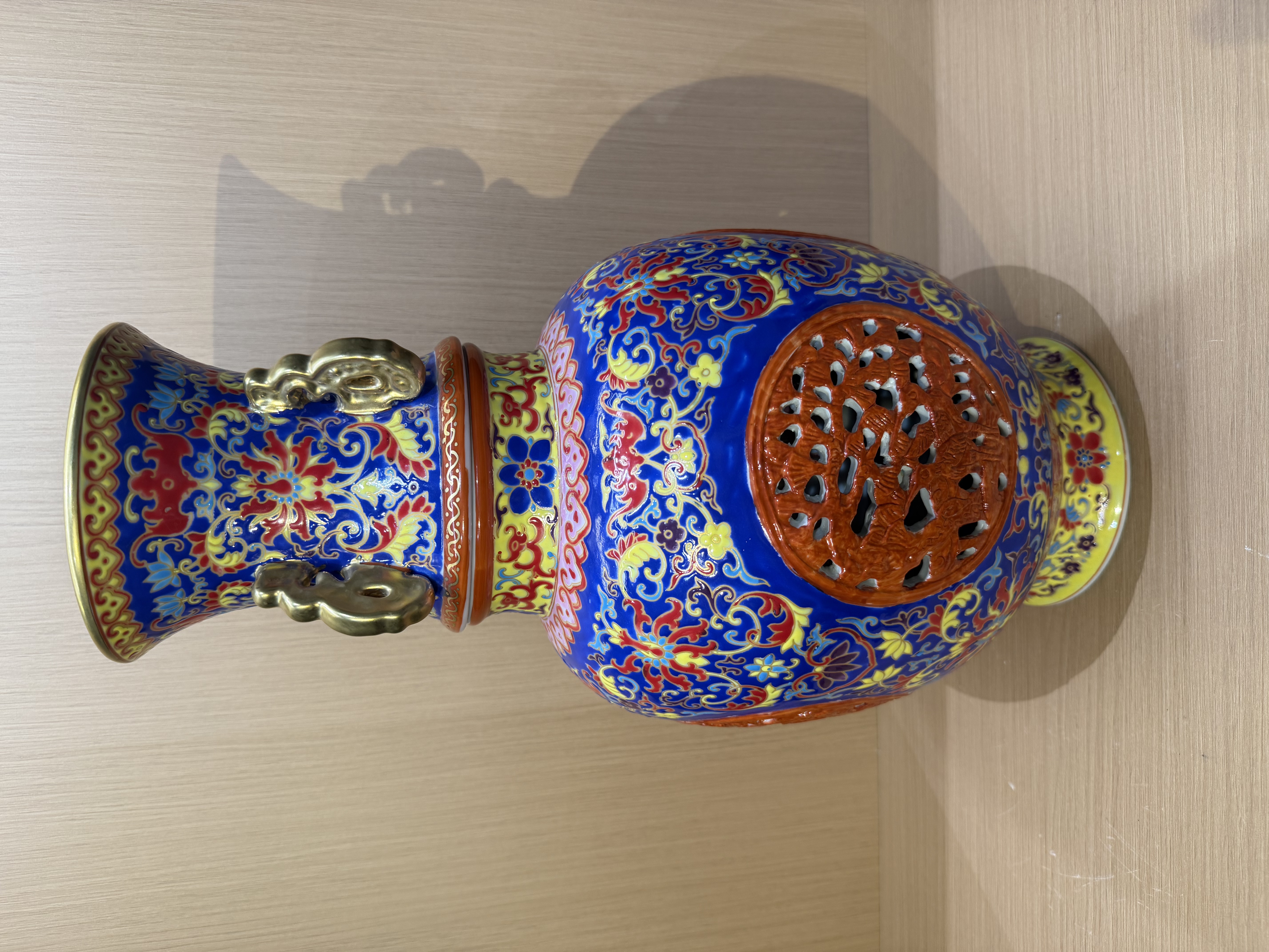 清中期 黄地景泰蓝瓜蝶纹绵绵葫芦瓶