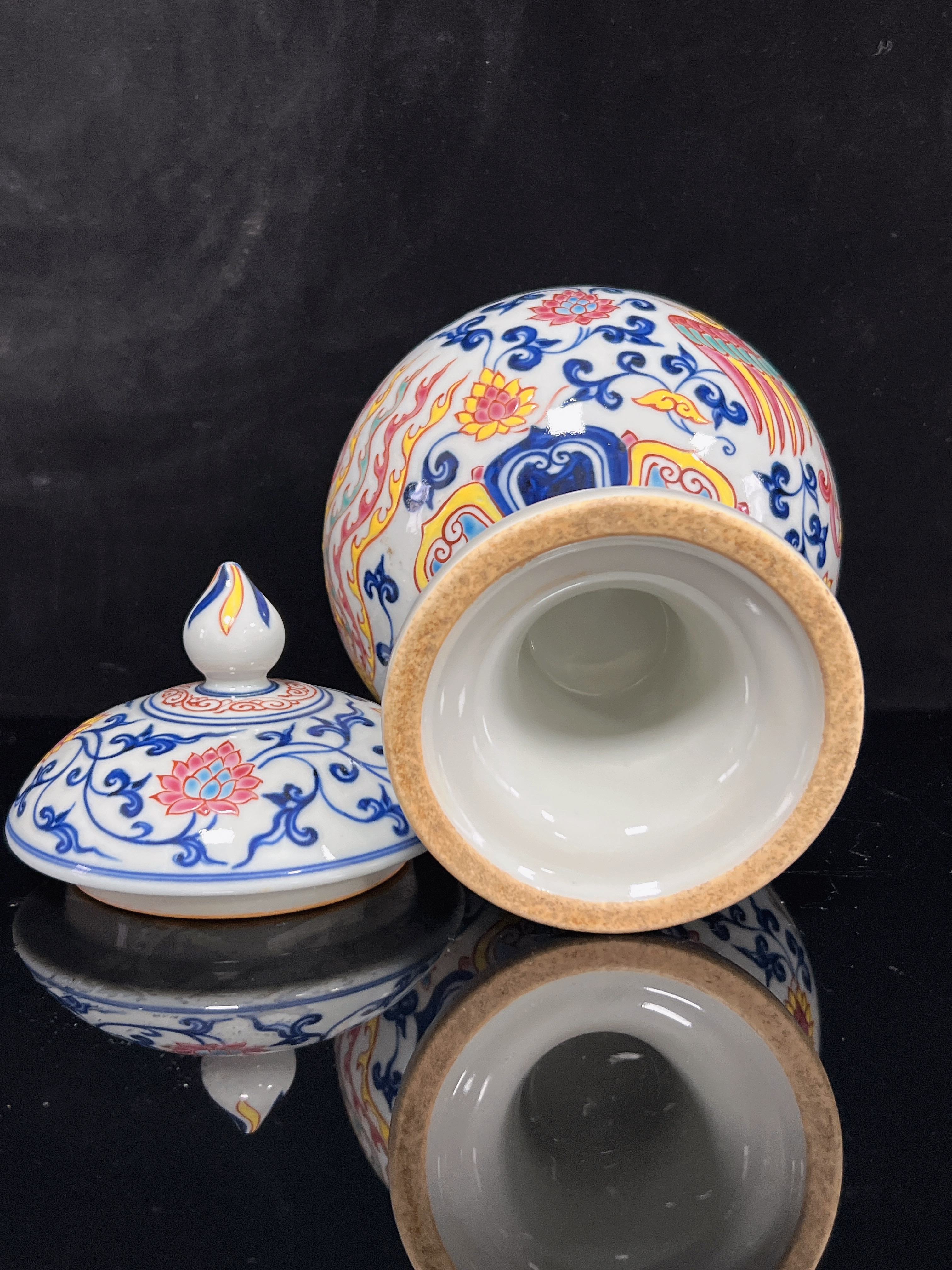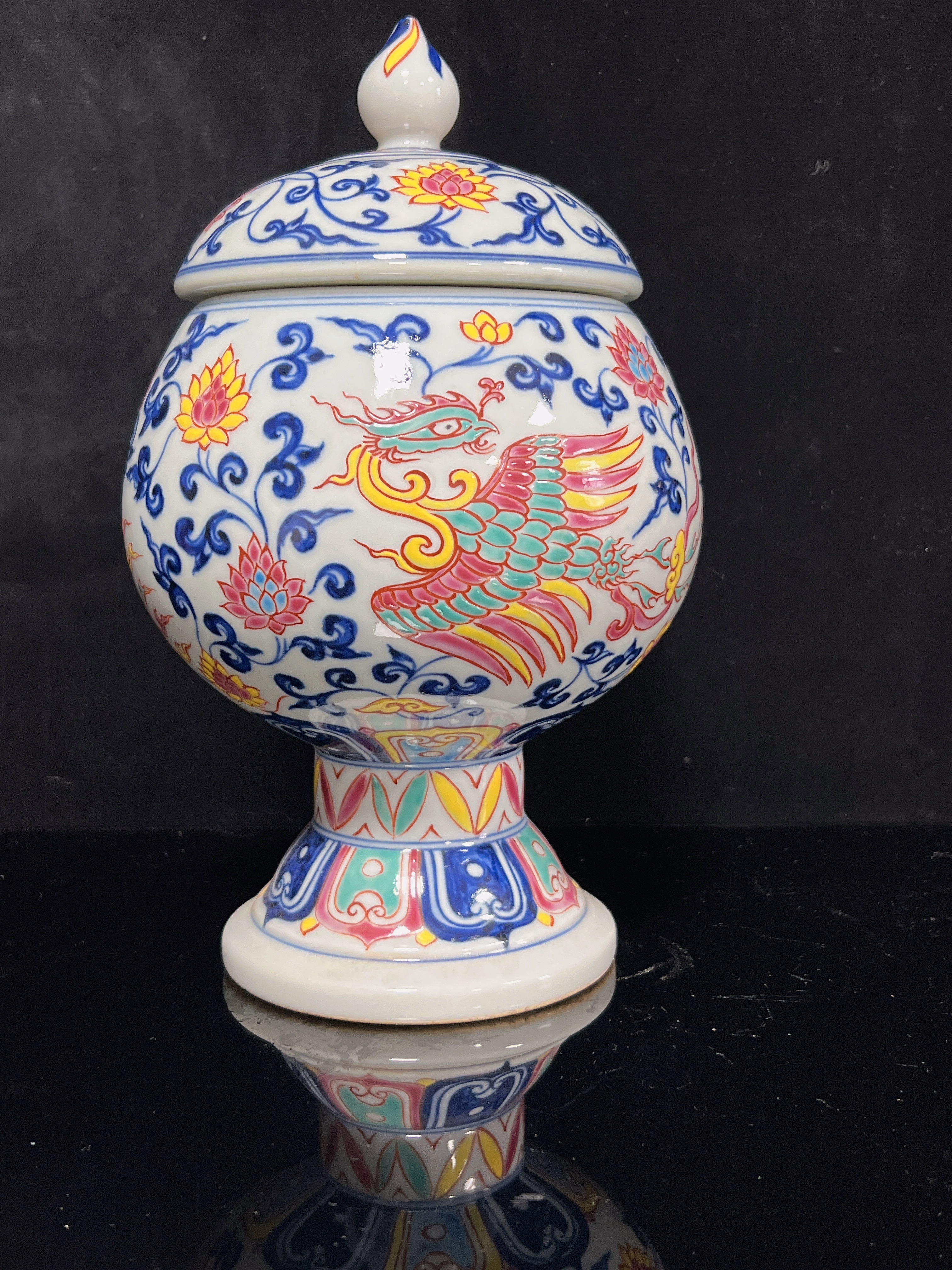 明 宣德青花加彩缠枝莲纹豆盖罐