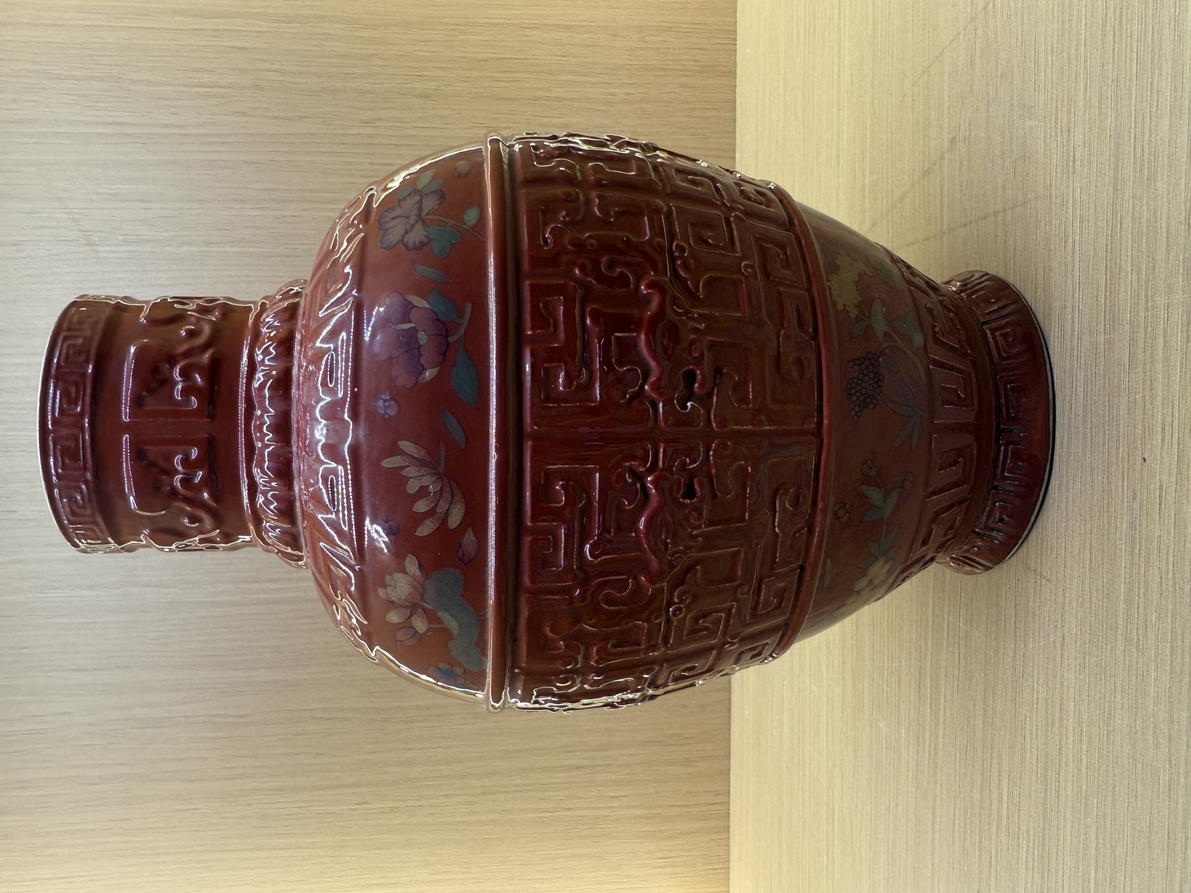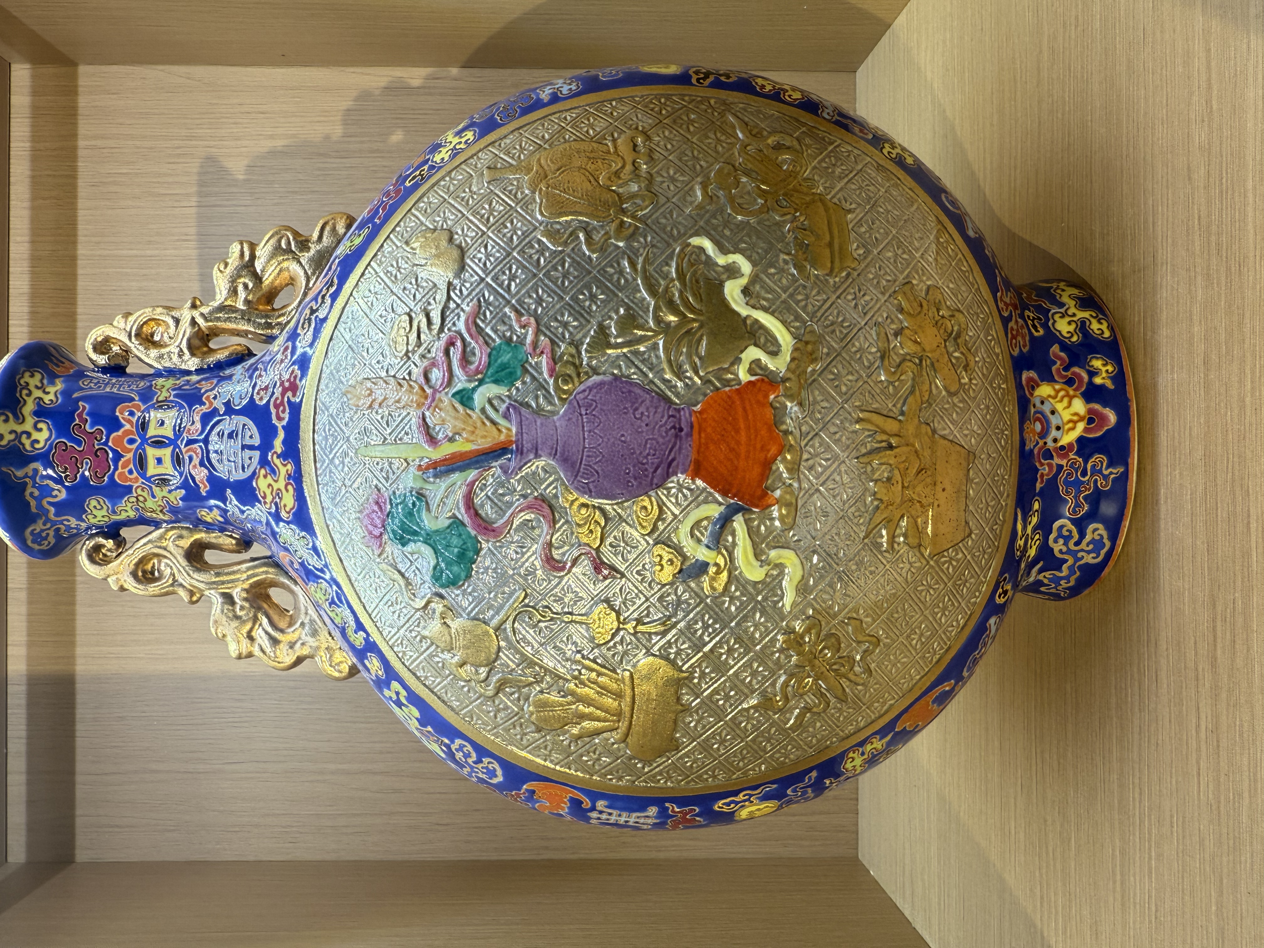 清早期 重工珐琅雕刻博古纹抱月瓶
